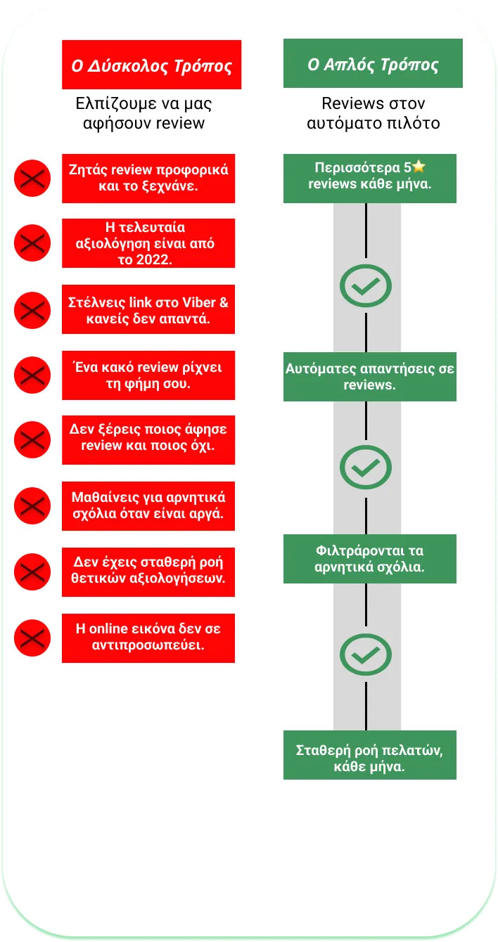 Είναι ένα αυτοματοποιημένο σύστημα που συλλέγει θετικές κριτικές, φιλτράρει διακριτικά τις αρνητικές και προβάλλει την επιχείρηση στους χάρτες της Google, διευκολύνοντας έτσι την απόκτηση νέων πελατών.